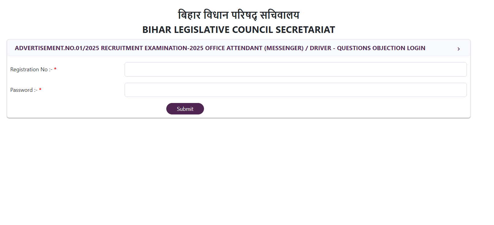 Ans:– बिहार विधान परिषद ड्राइवर और कार्यालय परिचारी का उत्तर कुंजी 02 जनवरी 2026 को जारी कर दिया गया हैं।