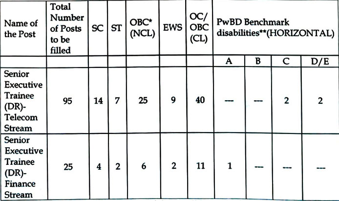 | Post Name | Sr. Executive Trainee (Telecom), Sr. Executive Trainee (Finance) |