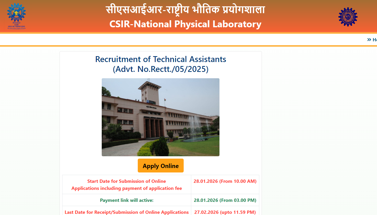 CSIR NPL Recruitment 2026– Important Dates