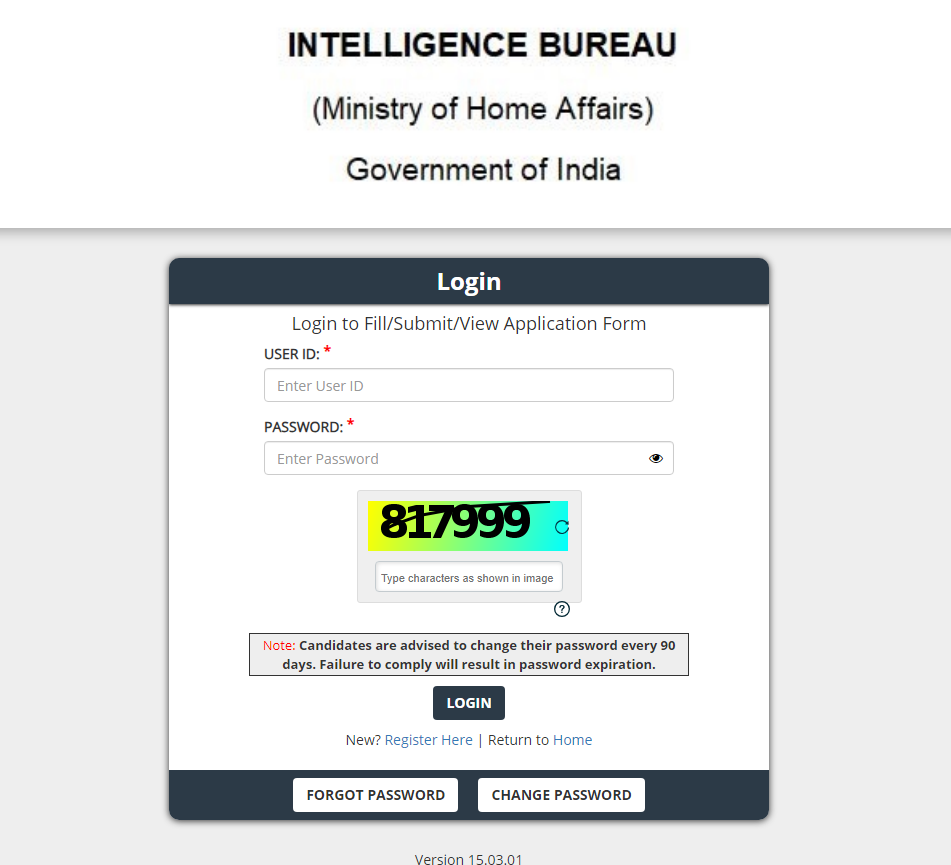 | संस्था का नाम | Ministry of Home Affairs (MHA), Intelligence Bureau (IB) |