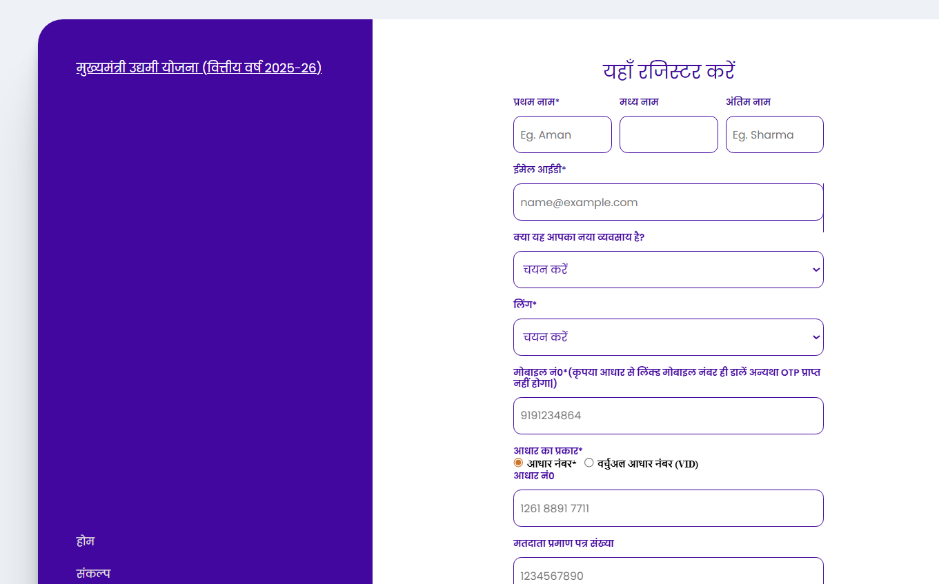 मुख्यमंत्री उद्यमी योजना 2025 26 के लिए ऑनलाइन आवेदन 25 फरवरी 2026 से शुरू कर दिए गए हैं।