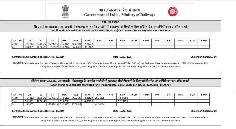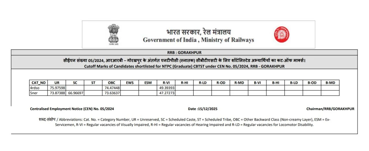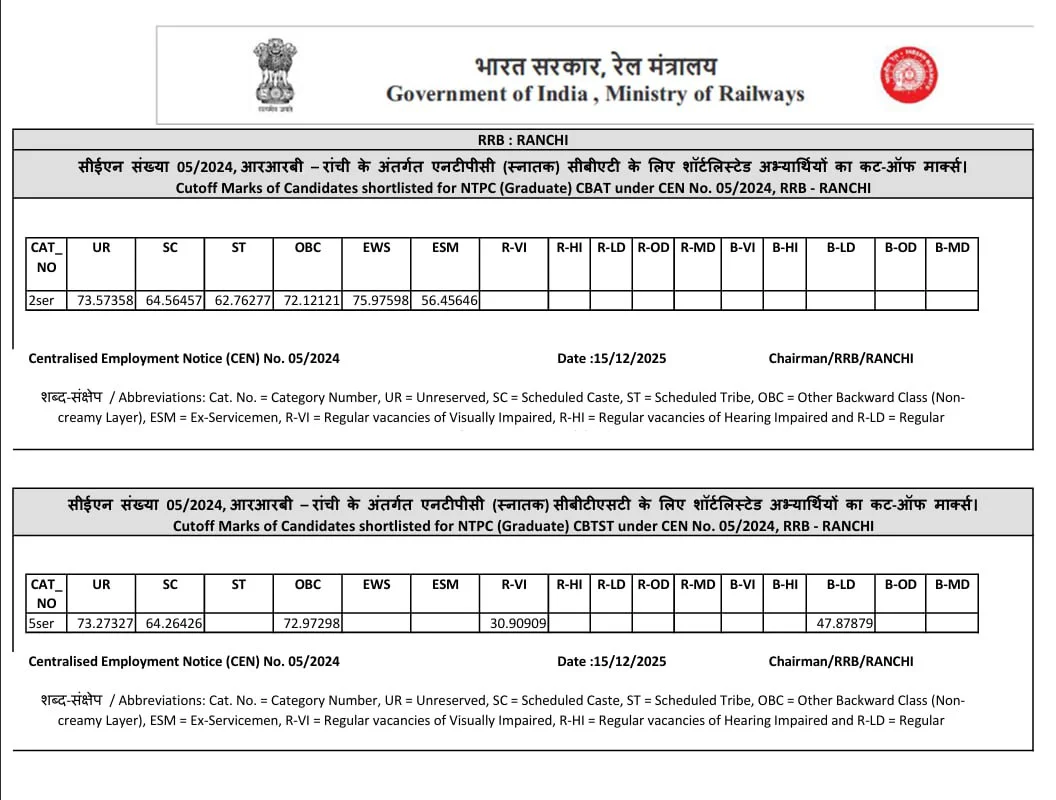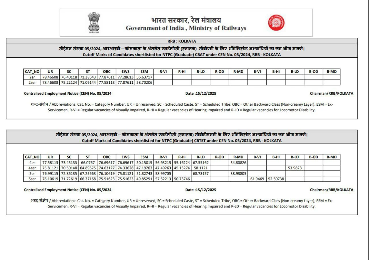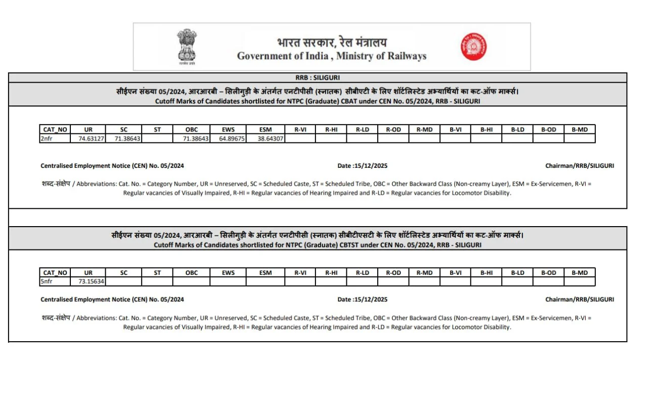 Ans:– रेलवे एनटीपीसी ग्रेजुएट लेवल CBT 2 एग्जाम का रिजल्ट 15 दिसंबर 2025 को जारी कर दिया गया है.