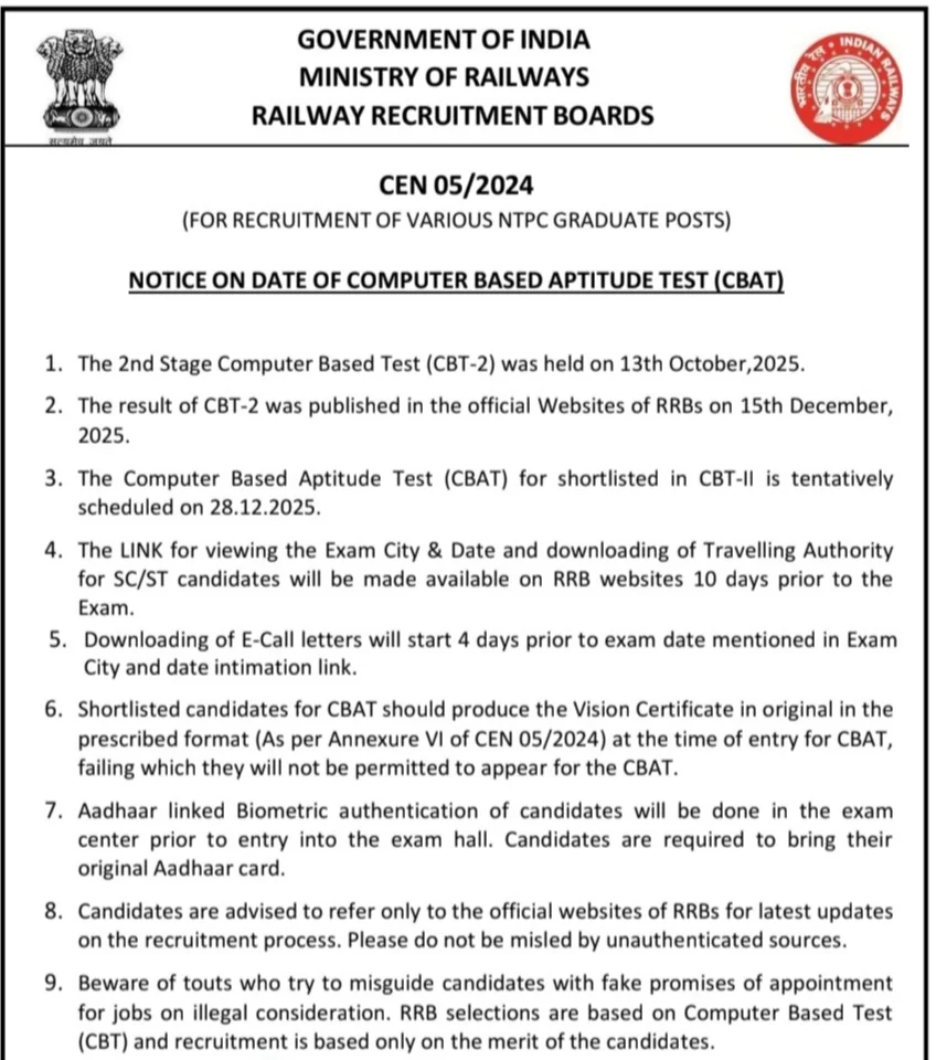 RRB NTPC Graduate Level CBT 2 Result 2025: Summary