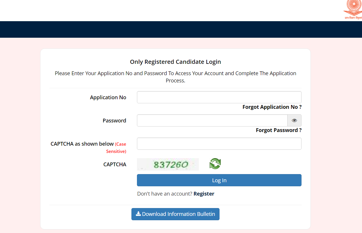 - इसके बाद अब अपना एप्लीकेशन नंबर और पासवर्ड को दर्ज कर देना है।