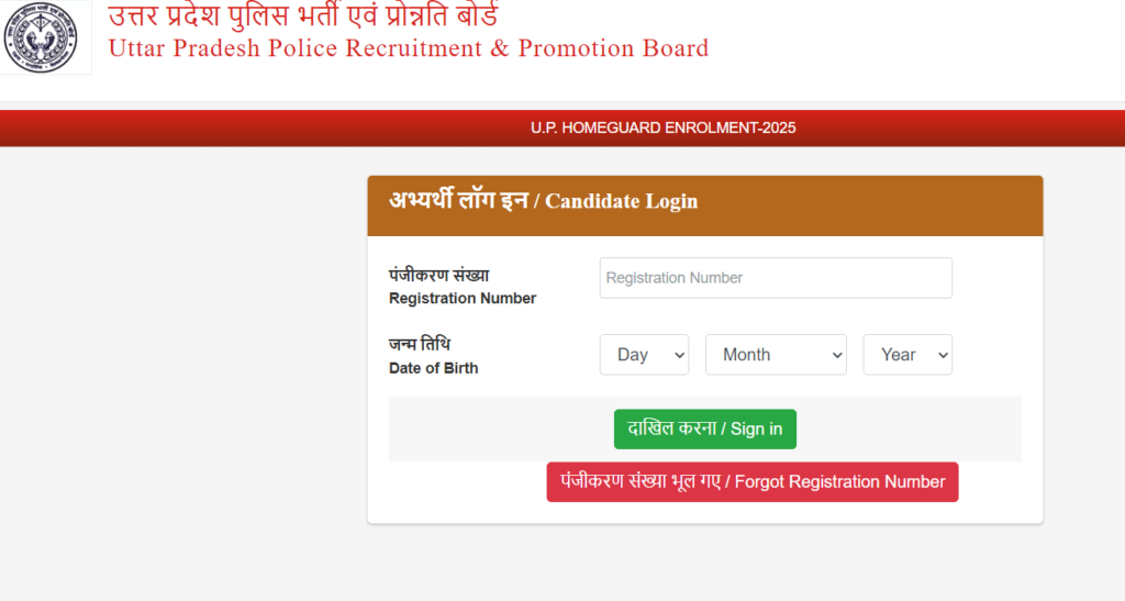 - अपना रजिस्ट्रेशन नंबर और जन्म तिथि डालें